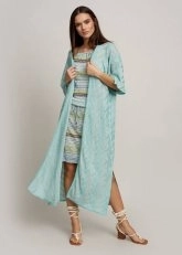 3/4 Sleeve Lurex Blue Kimono Knit Cardigan