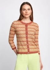 Ajur örgü detaylı triko hırka, serin yaz akşamlarında kombinlerinizin kurtarıcı parçası olacak. Knitss’in renk ve desen oyunlarını üzerinde taşıyan yuvarlak yaka triko hırka, ormanlarda biyolojik çeşitliliğin korunmasına yardımcı olan FSC sertifikalı İtalyan iplikten üretilmiştir. Çok renkli kadın triko hırka, koleksiyondaki diğer ürünlerle kolaylıkla kombinleyebilirsiniz.