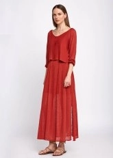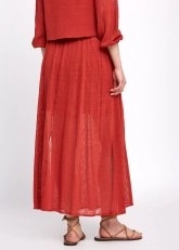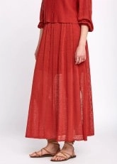 Ajur örgü detaylı tarçın uzun triko etek, birinci sınıf İtalyan ipliklerinden kendisi için en iyisini isteyen Knitss kadınları için özel tasarlanmıştır. Yumuşacık dokusu ve rahat kalıbı ile konforlu bir giyim deneyimi sunan uzun triko etek modeli, iki yandan yırtmaç detayı ile de Knitss şıklığını kombinlerinizle taşır.