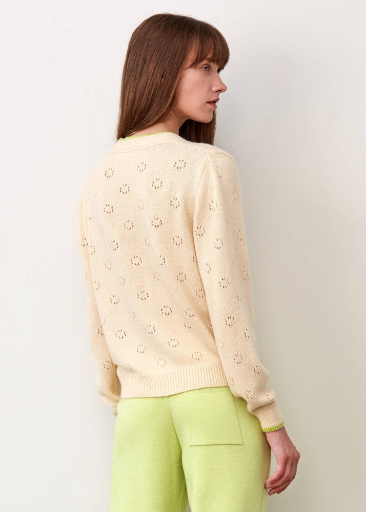 Ajur Örgü Düğmeli Krem Rengi Yün Hırka