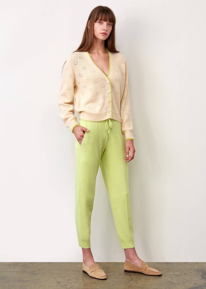 Rahat kesimi ile gün boyu konfor sunan krem rengi yün hırka, ev kombinleriniz için idealdir. Krem yün hırka, düğme ve kontrast çizgi detayına sahiptir. İtalyan yün ipliklerden üretilen yün hırka, koleksiyonun diğer parçaları ile kombinlenebilmektedir.