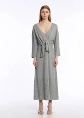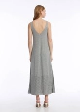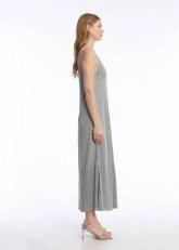 Tek parçada sofistike şıklık sunan kolsuz gri triko elbise, konforu ön planda tutan çağdaş stili ile yazlık giyim dolabınızın favorilerinden olmaya adaydır. Hafifliği ve rahatlığı ile yaz esintisini kombinlere taşıyan maxi gri triko elbise, ajur detaylı zarif işçiliği ile de hayranlık uyandırır. Sandaletler, topuklular ve spor ayakkabılarla kombinleyerek tek bir elbise ile farklı tarzlar elde edebilirsiniz.