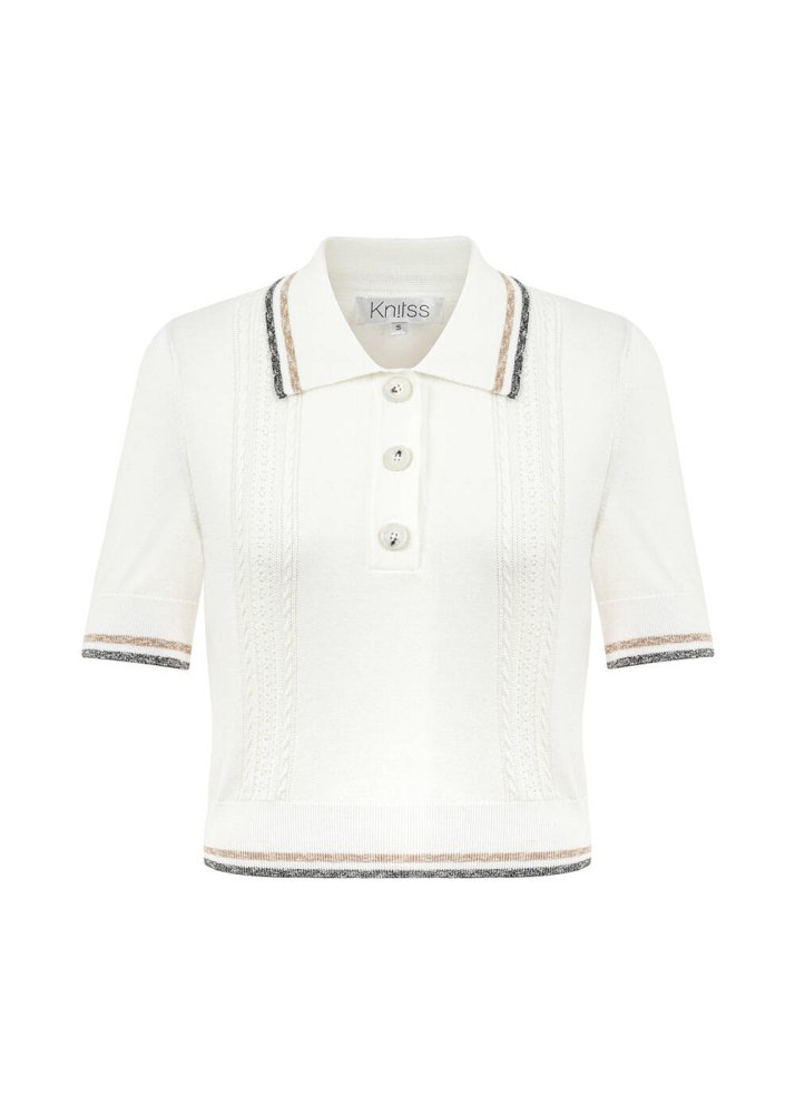 Knitss trikolarının özgün işçiliğini ve stilini her detayında yansıtan ajur örgü çizgili crop triko üstü keşfedin. Geri dönüştürülmüş pamuk yoğunluklu iplik içeriği ile sürdürülebilir modanın şık bir temsilcisi olan düğmeli yakalı crop triko üst, vintage stili çağdaş yorumla buluşturur. Rahat kalıbı ve zahmetsizce kombinlenen rengi ile gardırobunuzun stil sahibi giy-çık parçalarından olmaya adaydır.
