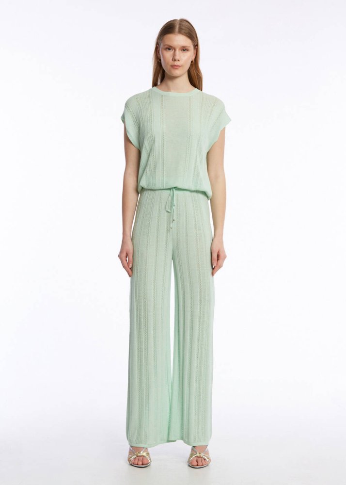 Ajur Örgü Mint Yeşili Triko Pantolon