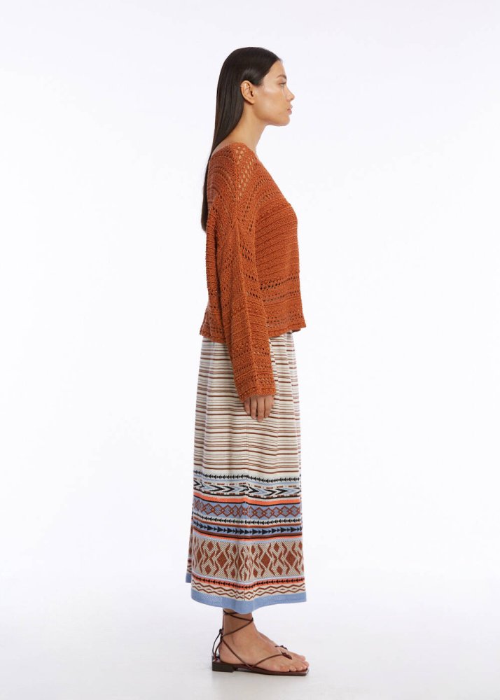 Ajur Örgü Oversize Tütün Rengi Triko Üst