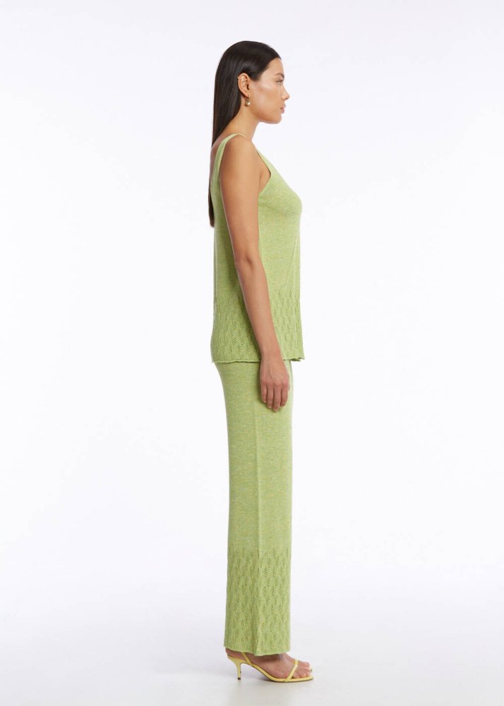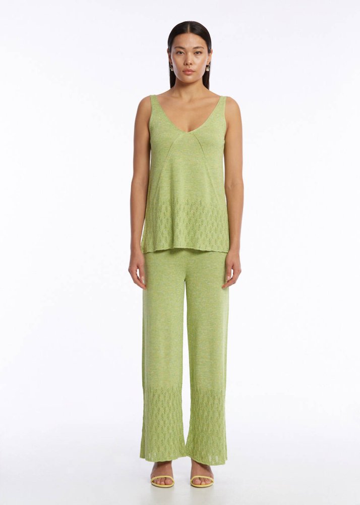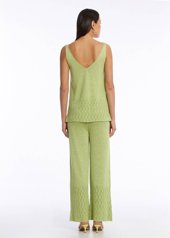 Glow Pants Ajur Örgü Yeşil Triko Pantolon