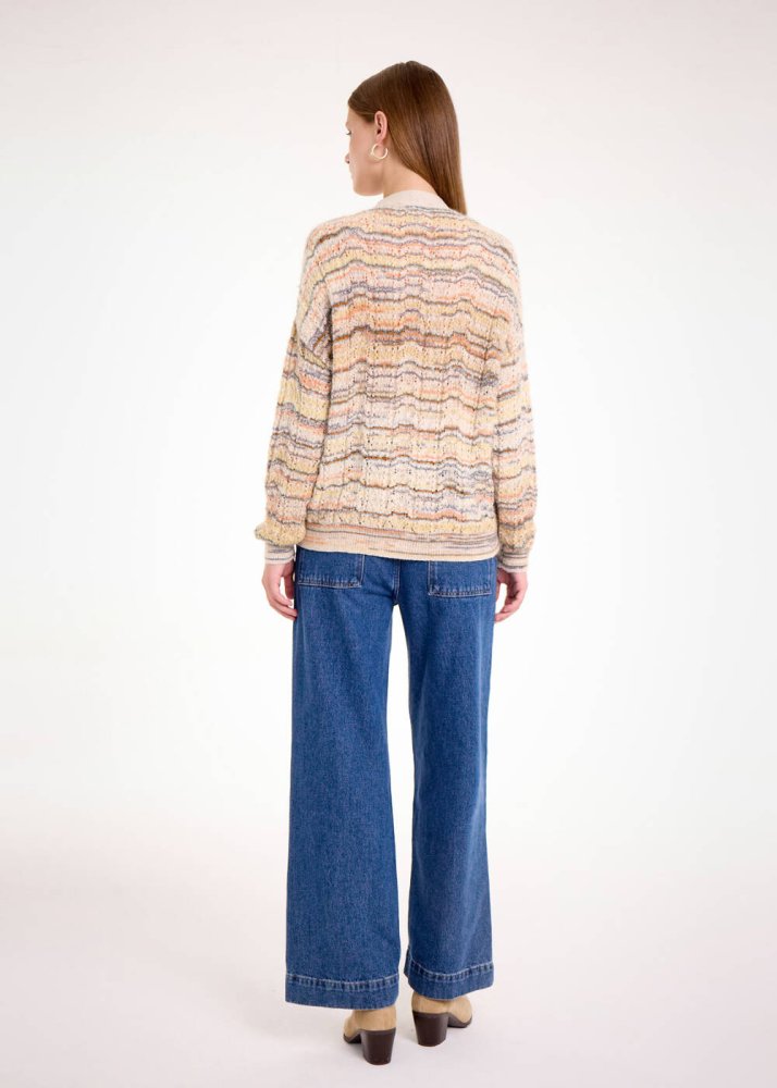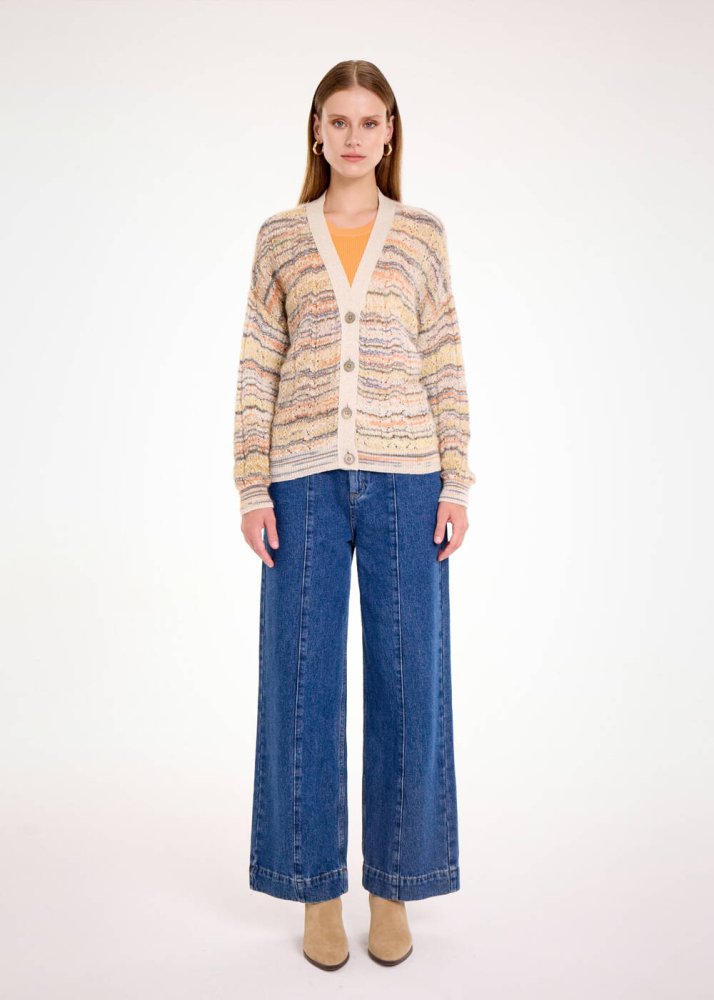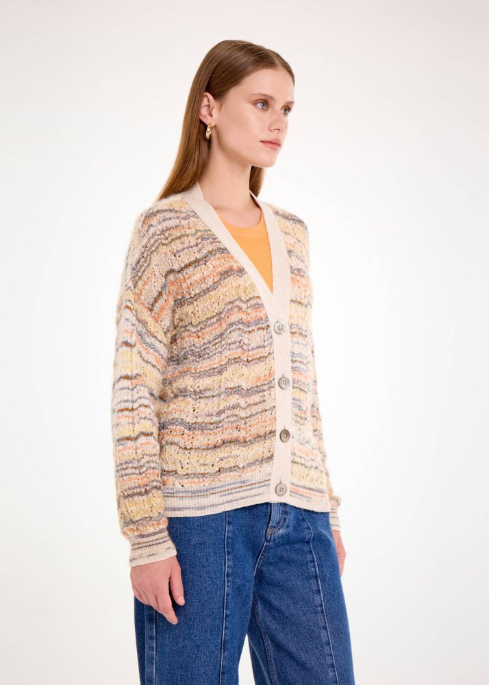 ALPACA BLEND RAINBOW COLOR BLOCK KNIT CARDIGAN