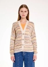 Yumuşacık Alpaka yün karışımlı renk geçişli bej hırka, Knitss trikolarının özgün stilini ve zarif detaylarını barındıran özel bir parçadır. Hafifliği ve yumuşaklığı ile tensel duyuları harekete geçiren Alpaka yünlü düğmeli hırka; renk geçişli tasarımı ve ajur örgü detayı ile sofistike giyim zevkini yansıtır. Konforu ön planda tutan şıklığı ve kolay kombinlenebilen renkleri ile ideal bir giy-çık parçadır.