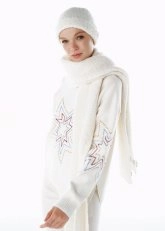 Renkli Yıldız Desenli Merino Yün Triko Ekru