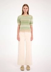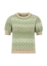 Yeşil degrade kısa kabarık kollu triko üst, sofistike stilinin yanında Alpaka yün karışımlı italyan ipliklerinden oluşan içeriği ile de ayrıcalıklıdır. Yumuşacık dokusu ve sıcak tutan yapısı ile maksimum konfor sunan triko üst, ilk temastan itibaren hayranlık uyandırır. Yeşil degradeli minik desenli modeli ile kışlık kadın kombinlerine Knitss’in özgün dokunuşunu katar.