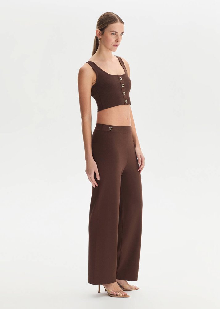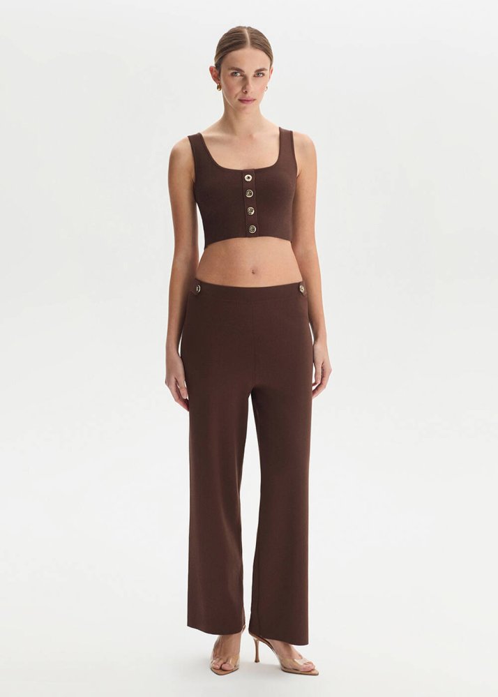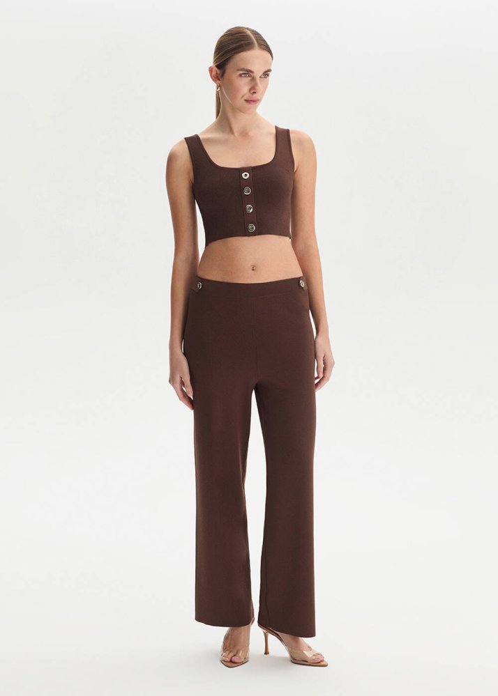 Apolet Detaylı Kahve Triko Pantolon