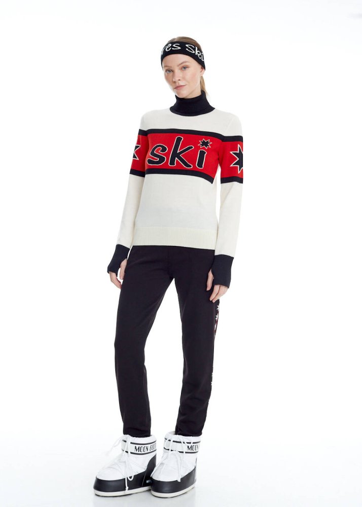 Stil sahibi aksesuarlarla ince zevklerini giyimine yansıtan kadınların kayak kombinleri için üretilen Apres Ski yazılı saç bandı, Merino yününden üretildi. Zamansız kayak stilini doğal ve konforlu Merino yün içeriği ile taçlandıran saç bandı; terletmez, kaşındırmaz, uzun yıllar ilk günkü görünümünü korur. Knitss’in kayak koleksiyonundaki tüm trikolara kusursuz uyum sağlar.