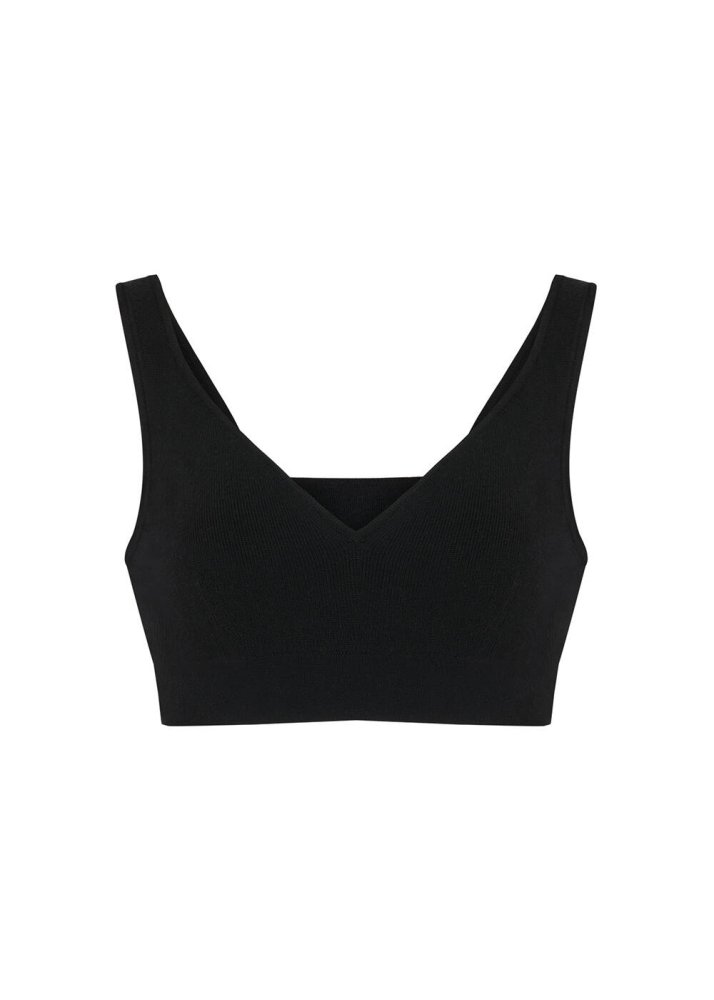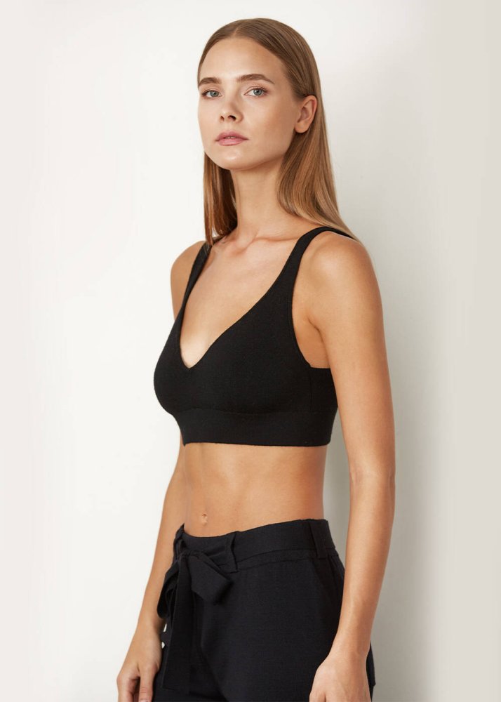 Askılı Merino Yün Siyah Crop Triko Üst