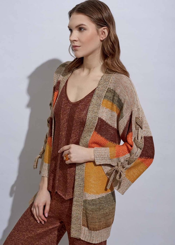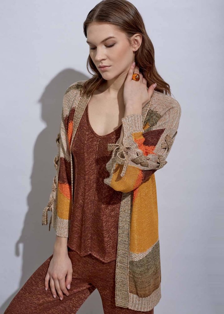 Trikoyu Knitss şıklığı ile buluşturan triko hırka, yumuşak dokusu ve rahat kalıbı ile favori kombin tamamlayıcınız olacak mükemmel bir parçadır. Renk ve desen kombinasyonlarıyla business ve günlük stilinize Knitss ayrıcalığı katacak kadın triko hırka modeli, intersia örgü tekniği kullanılarak örülmüştür.