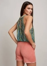 Yazlık dolabınızın yeni favorisini keşfedin. Pembe ince triko şort, global çapta sürdürülebilir ormancılık ilkelerinin uygulandığı FSC sertifikalı İtalyan iplik kalitesi ile ayrıcalıklıdır. Nefes alan ince yüzeyi, rahat kesimi, bağcıklı modeli, fonksiyonel cepleri ile konfor sunar. Parıltılı metalik iplik yapısı ile benzersiz şıklıktadır. Çağdaş kadının yazlık dolabına uzun yıllar değer katacak bir Knitss tasarımıdır.