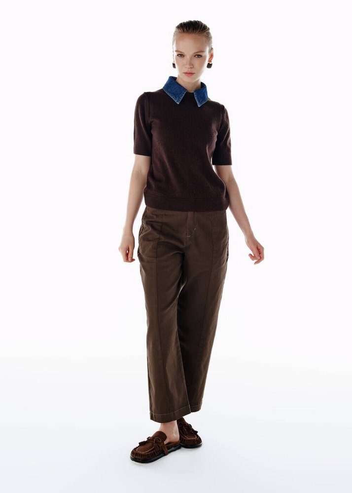 Günlük stilin enerjisini yeniden tanımlayan yeşil barrel leg pantolon, rahatlık ve stilin mükemmel buluşması. Bel ve paça hattındaki dikiş detayları tasarıma karakter katarken, crop boyu çağdaş bir siluet oluşturur. Cepli yapısı fonksiyonellik sunarken, pamuklu kumaşın doğallığı konforu ön plana çıkarır. Hafif elastan katkısı sayesinde vücuda uyumlu bir form sağlar. Triko üstlerle veya basic tişörtlerle tamamlanarak, günün temposuna doğal bir zarafetle eşlik eder.
