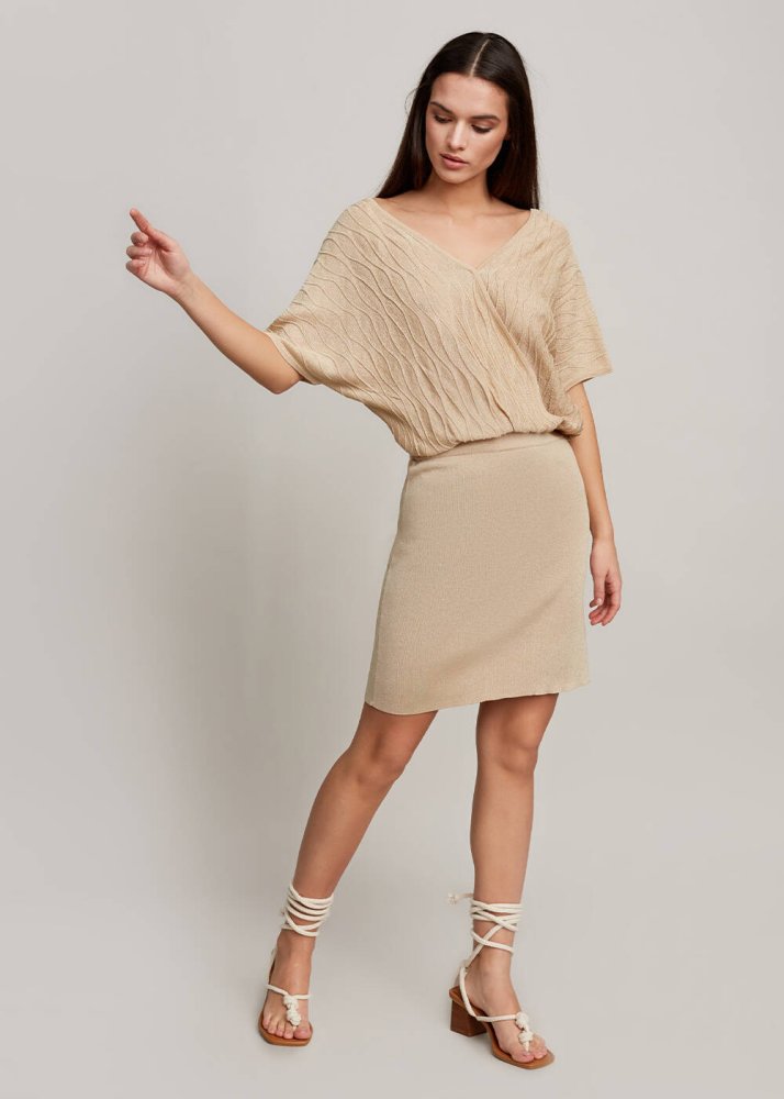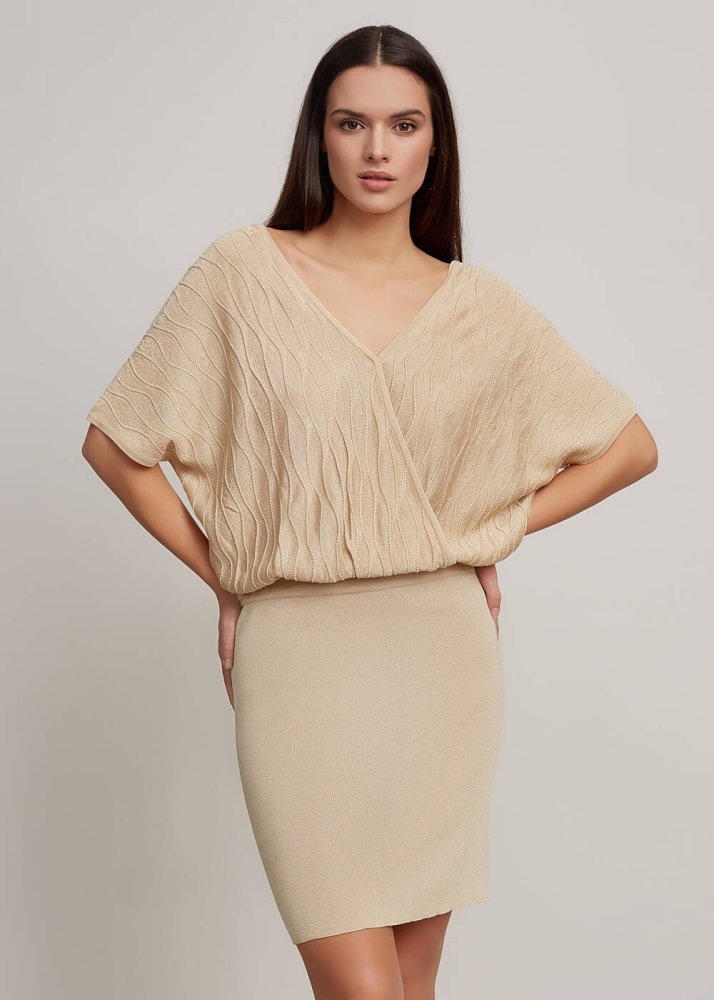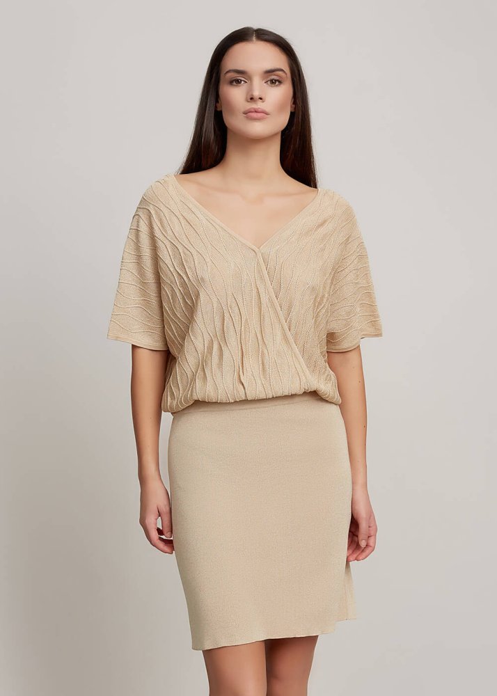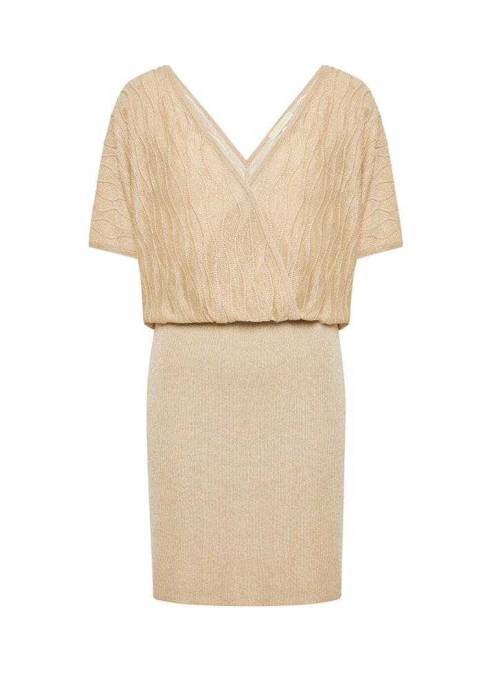 Beige V Neck Wrap Knit Dress