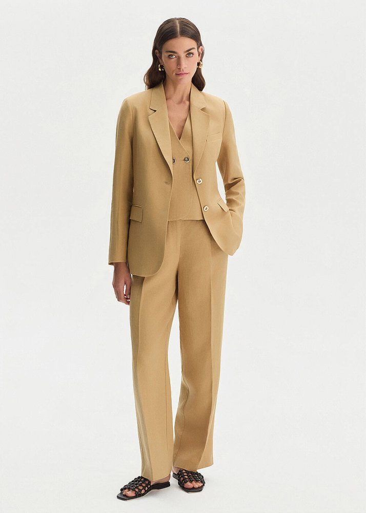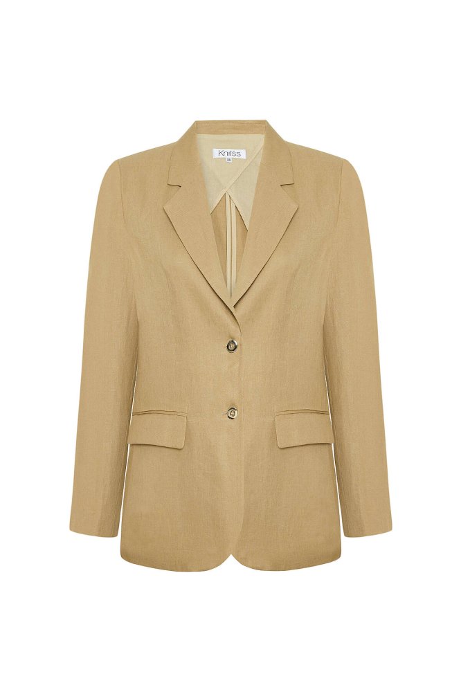 Bej Keten Blazer Ceket