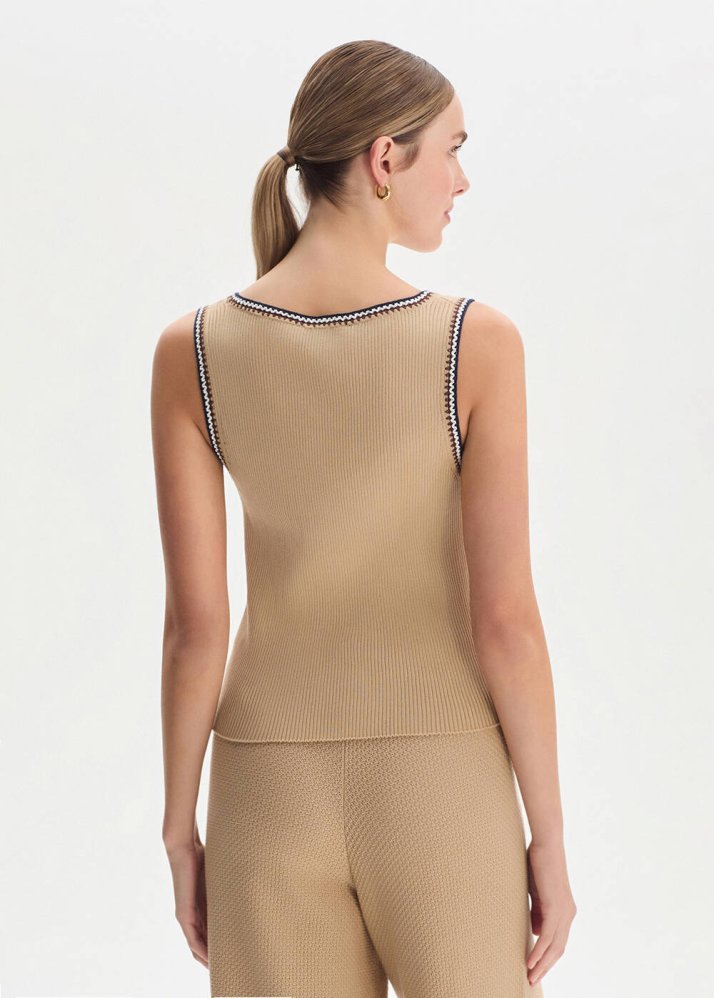 İtalyan ipliğiyle üretilen bej triko üst, vücuda dengeli oturan formuyla yalın ve zamansız bir siluet sunar. Kolsuz tasarımı ve kontrast örgü geçişleri, sade yapısına incelikli bir vurgu kazandırır. %85 organik merserize pamuk karışımlı dokusu, nefes alabilir özelliğiyle gün boyu konforlu bir kullanım sunar.