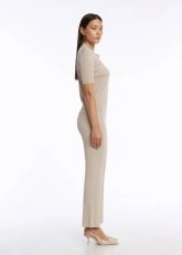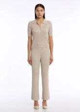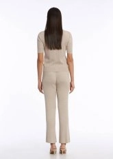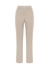 Yazlık kadın kıyafetlerine triko konforunu taşıyan bej rengi pantolon, sürdürülebilir moda ilkelerine göre geri dönüştürülmüş İtalyan ipliklerinden üretildi. Dayanıklı yapısı sayesinde uzun ömürlü kullanım sunan bej triko pantolon, rahat kalıbı ve elastik beli ile konforu önceleyen bir giyim deneyimi sunar. Minimal stili ve zamansız rengi ile kullanışlı bir kombin tamamlayıcısıdır.