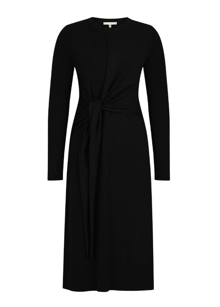Belden Bağlamalı Uzun Siyah Triko Elbise