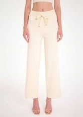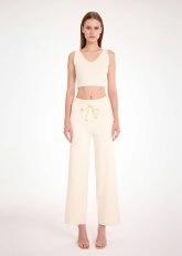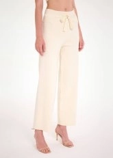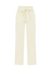 Bol kesim krem triko pantolon, hem günlük hem spor hem de ofis kombinleri için stil sahibi kullanışlı bir parçadır. Bağcıklı elastik beli, rahat kalıbı, geri dönüştürülmüş İtalyan ipliklerinden üretilen triko kumaşı ile konforu ön planda tutan şıklık sunar. Zamansız rengi ve farklı tarzlara uyum sağlayan stili ile giyim dolabınızın en sevilen giy-çık parçalarından olmaya adaydır.