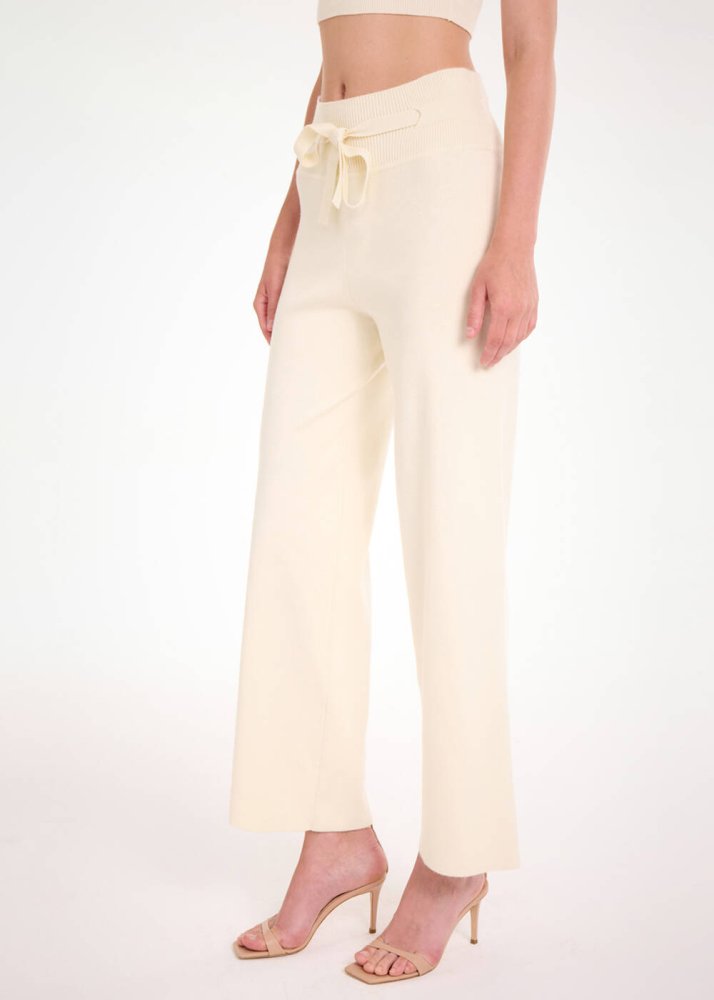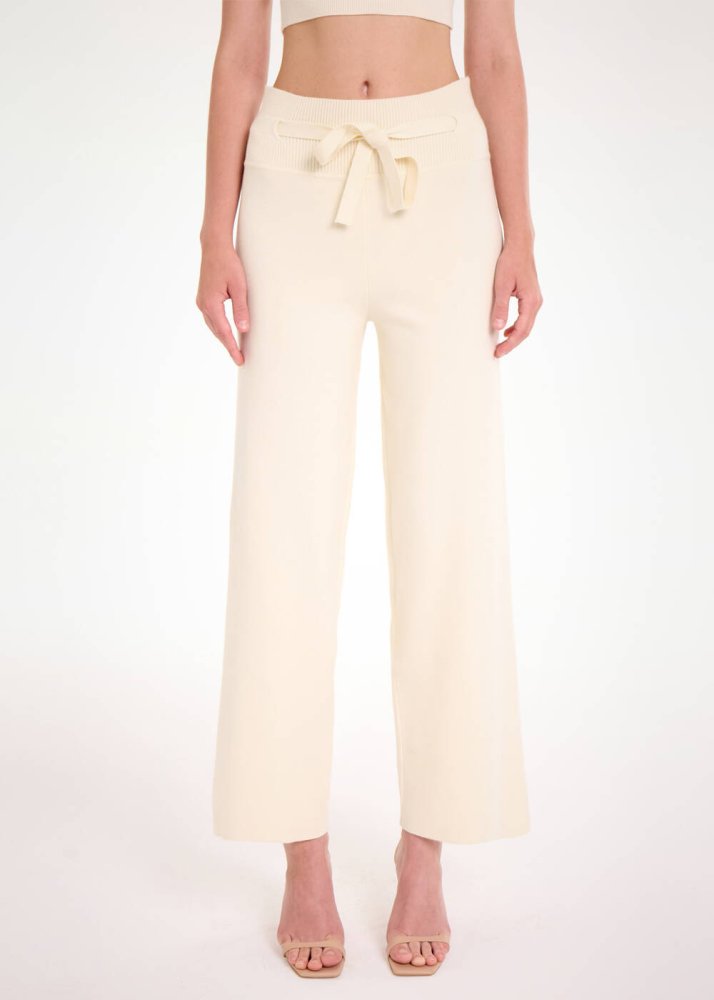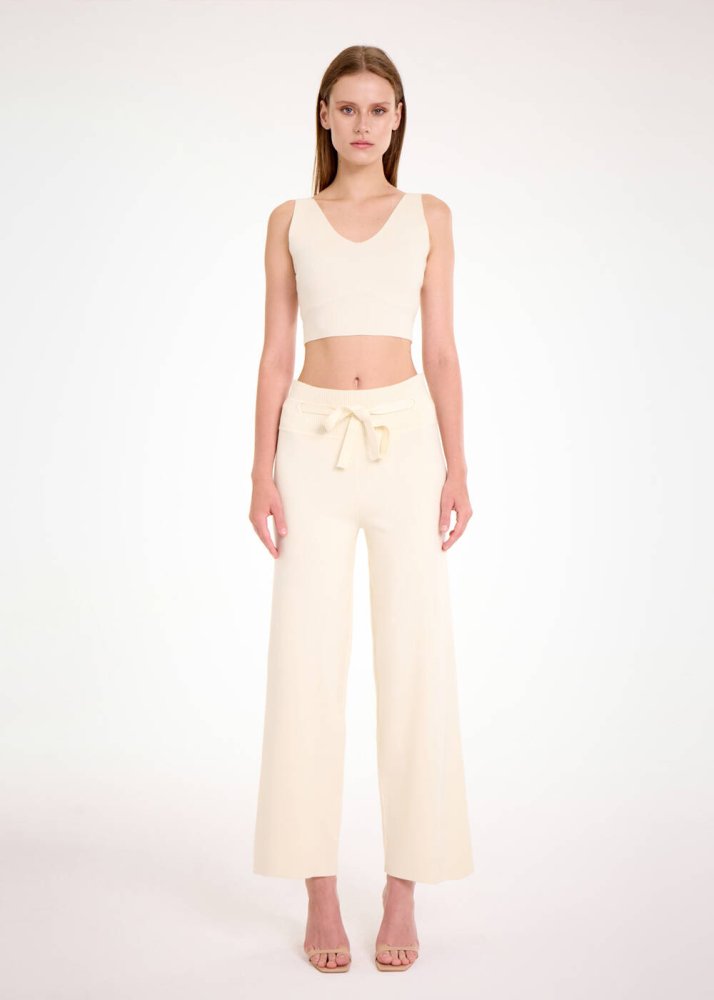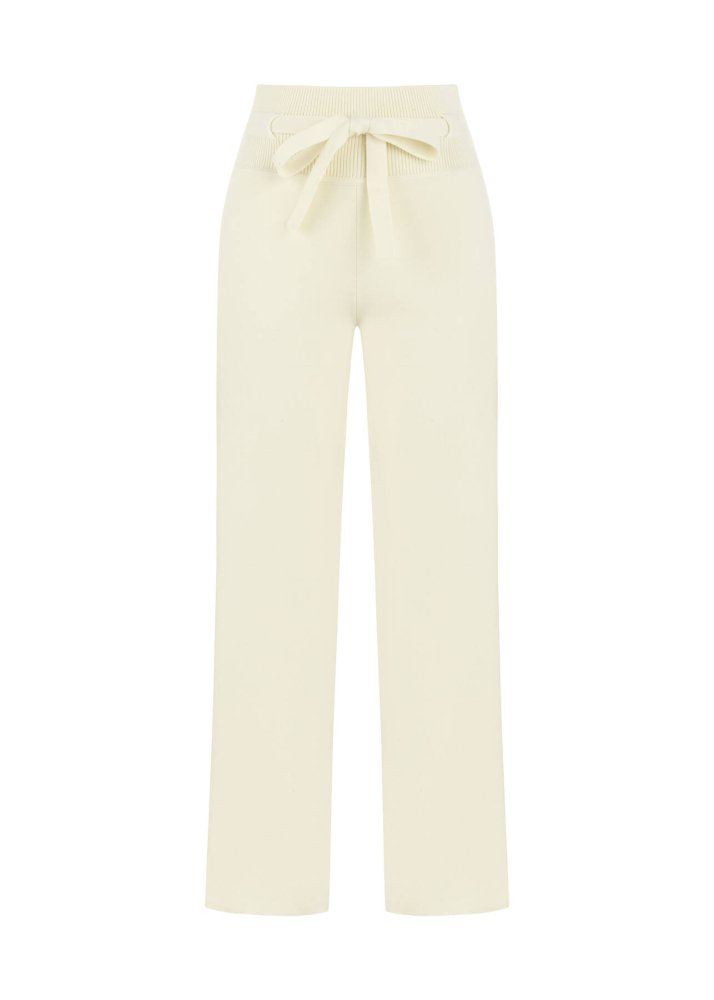 Beli Bağcıklı Krem Triko Pantolon