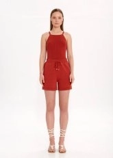 Triko şıklığını yazlık kombinlere de özgün modellerle taşıyan Knitss, tarçın rengi triko şort modeli ile fark yaratan bir stil vadediyor. Etek uçları pointel detaylı beli bağcıklı tarçın rengi triko şort, mükemmel kalıbı ve rahat kesimi ile konforu ön planda tutan şıklık sunar. Geri dönüştürülmüş İtalyan iplik içeriği ile sürdürülebilir ve doğaya saygılı bir giyim anlayışının ürünüdür.