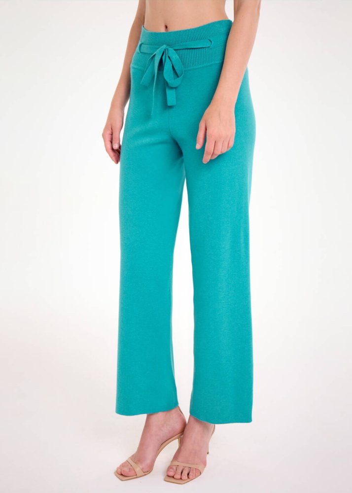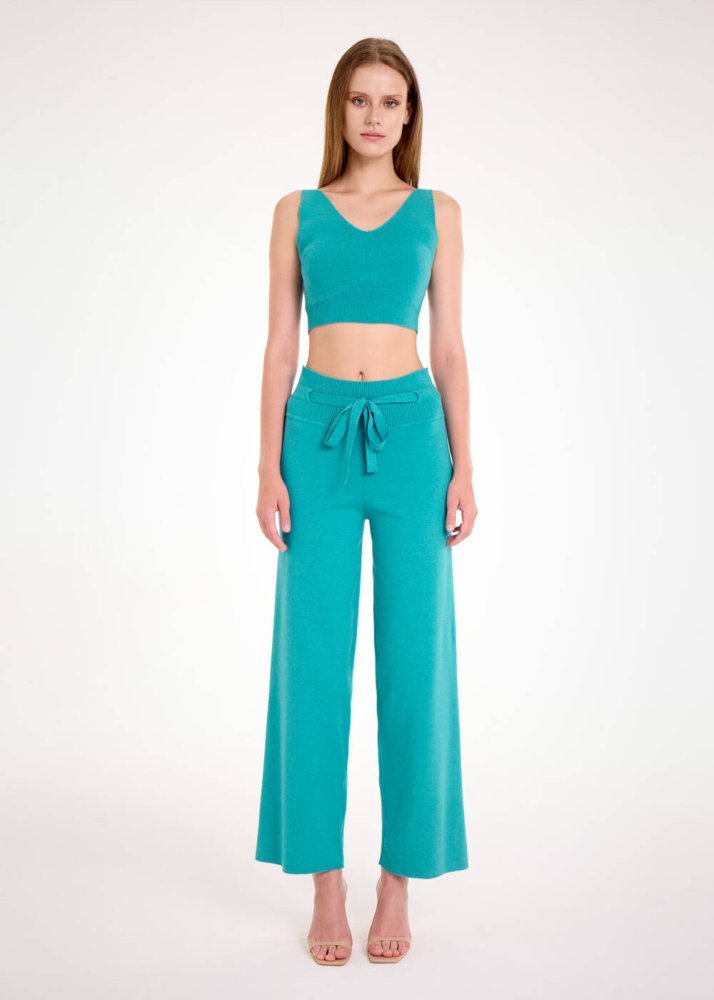 Beli Bağcıklı Turkuaz Triko Pantolon