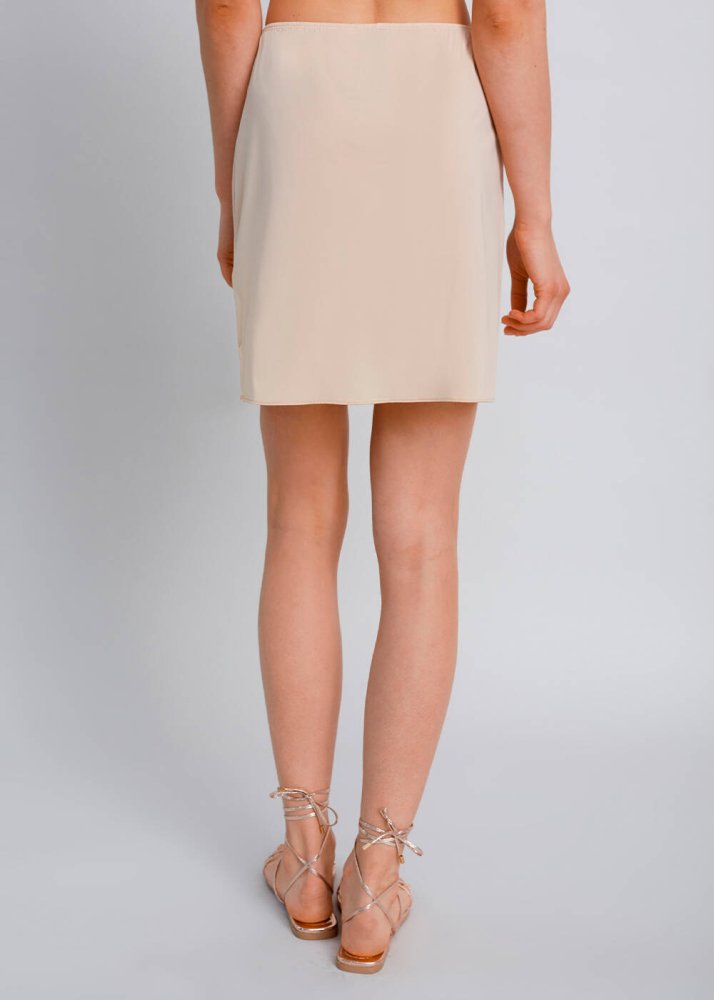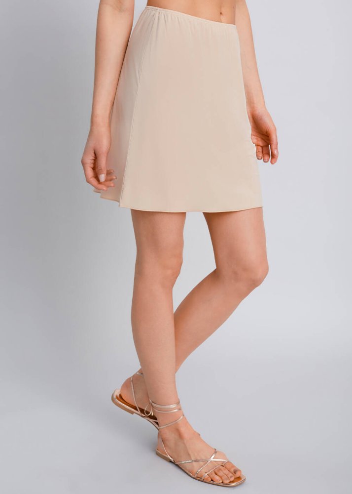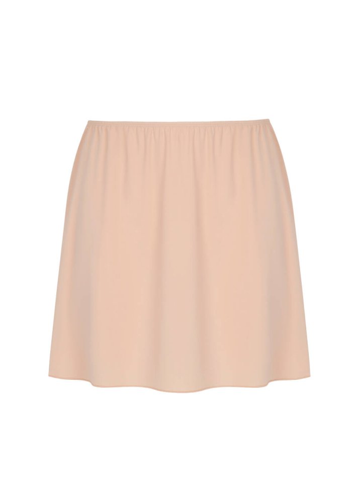 Yazlık elbise astarı olarak kullanılan ten rengi mini jüpon, iç göstermeyen ince kumaşı ve beli lastikli yapısı ile çok kullanışlıdır. Knitss transparan triko elbise ve eteklerin altına giyebilmeniz için özel olarak üretilen bej rengi mini jüpon etek, ideal boyu ve mükemmel kalıbı ile kusursuz görünümünüzü destekler.