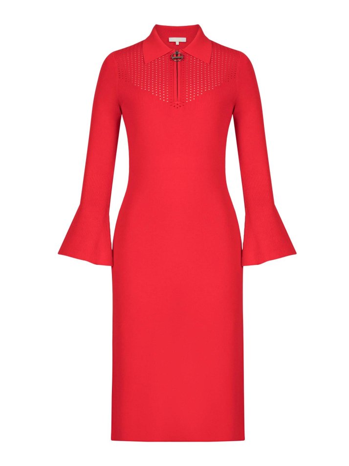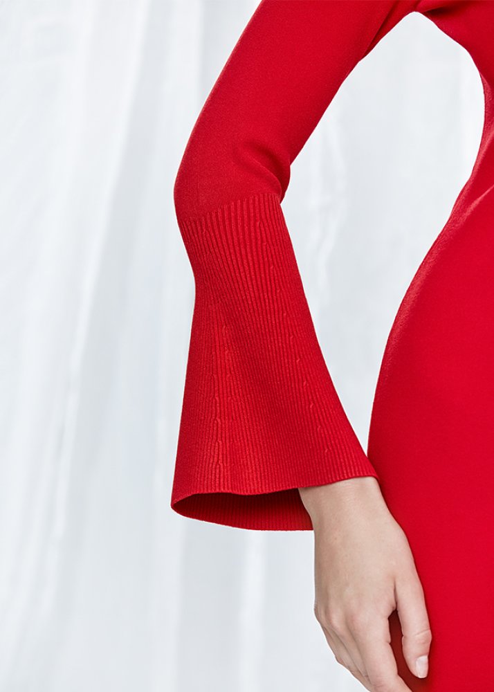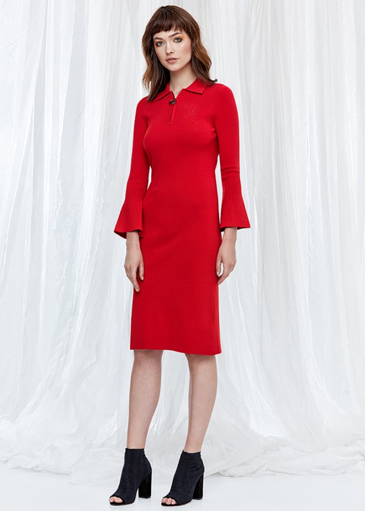 Bell Sleeve Red Knit Dress