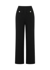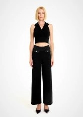 MERINO WOOL BLEND V NECK BLACK KNIT TOP