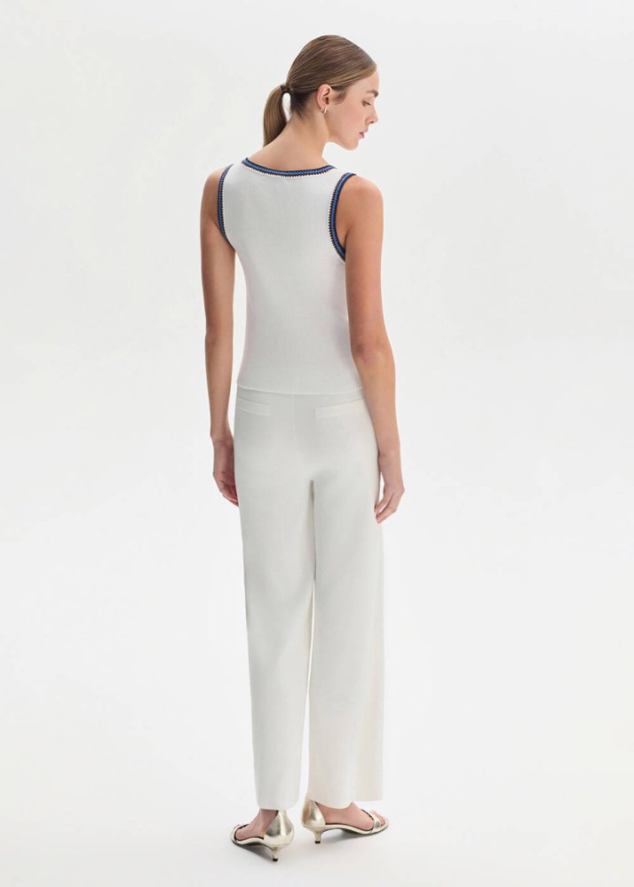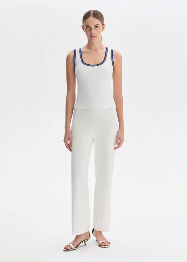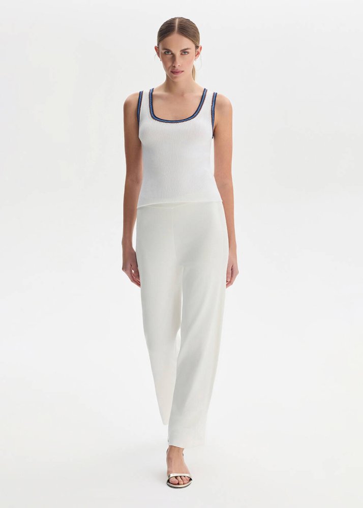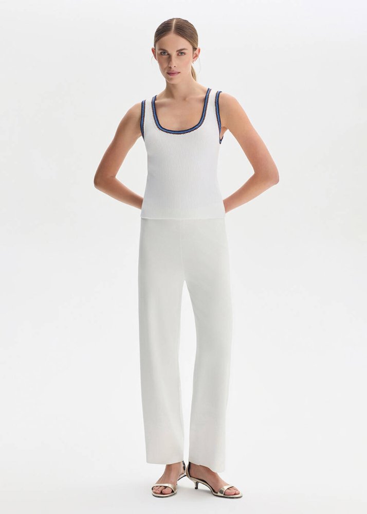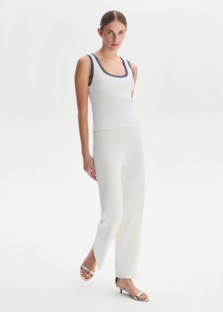 Beyaz Fitil Örgü Detaylı Triko Pantolon