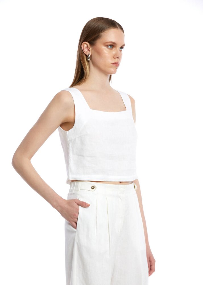 Doğal dokusuyla öne çıkan beyaz keten crop Üst, yaz aylarında hem konfor hem de stil arayanlara hitap ediyor. Hafif yapısı ve %100 keten içeriği sayesinde teninize nefes aldırırken, sıcak havalarda ferah bir kullanım sunuyor. Kare yaka detayı ve rahat kesimiyle sade ama güçlü bir siluet yaratıyor. Beyaz keten pantolonla kombinlendiğinde zarif ve bütüncül bir görünüm elde edilirken, beyaz keten şortla daha enerjik ve modern bir yaz stili yakalayabilirsiniz. Doğal dokusu ve zamansız beyaz rengi sayesinde farklı stillerle kolayca uyum sağlayacak.