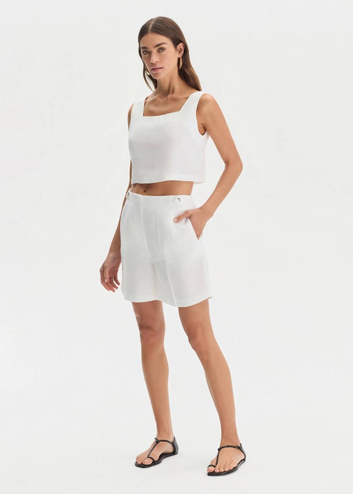 Yaz mevsiminin ruhunu yansıtan bu beyaz keten şort, %100 doğal ketenin teninize değen o serinletici hissini, ferahlığı ve zarafeti Knitss imzasıyla buluşturuyor. Yanlardaki düğmeli apolet detayları şorta sofistike ve özgün bir hava katıyor. Üzerinizde yokmuş gibi hissettiren benzersiz hafifliğiyle gün boyu rahat edin. Relaxed fit kalıbı, üzerinizde zarif bir duruş sergileyerek, yaz gardırobunuzun en rafine ve vazgeçilmez parçası olmaya aday.