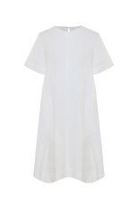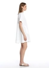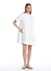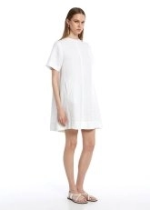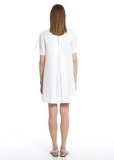 Sade ve şık tasarımıyla dikkat çeken beyaz mini keten elbise, rahat ve hafif yapısıyla yaz günlerinin vazgeçilmezi. Ön kısmındaki minimal dikiş detayları zarif bir hava katarken, arka kısmındaki pile detayı ise hareket özgürlüğü sunuyor. Bel hizasındaki cepler, hem pratiklik sağlıyor hem de tasarıma şıklık ekliyor. Düz ve rahat kesimiyle, her vücut tipine uyum sağlayarak sıcak havalarda kolayca kombinlenebilir ve günlük şıklığınızı tamamlar.