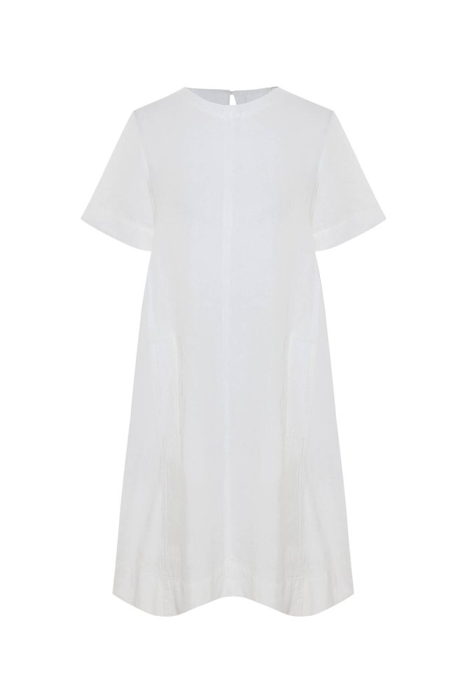 Beyaz Mini Keten Elbise