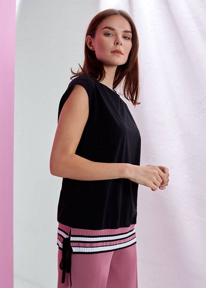 Bisiklet Yaka Kolsuz Siyah T-Shirt