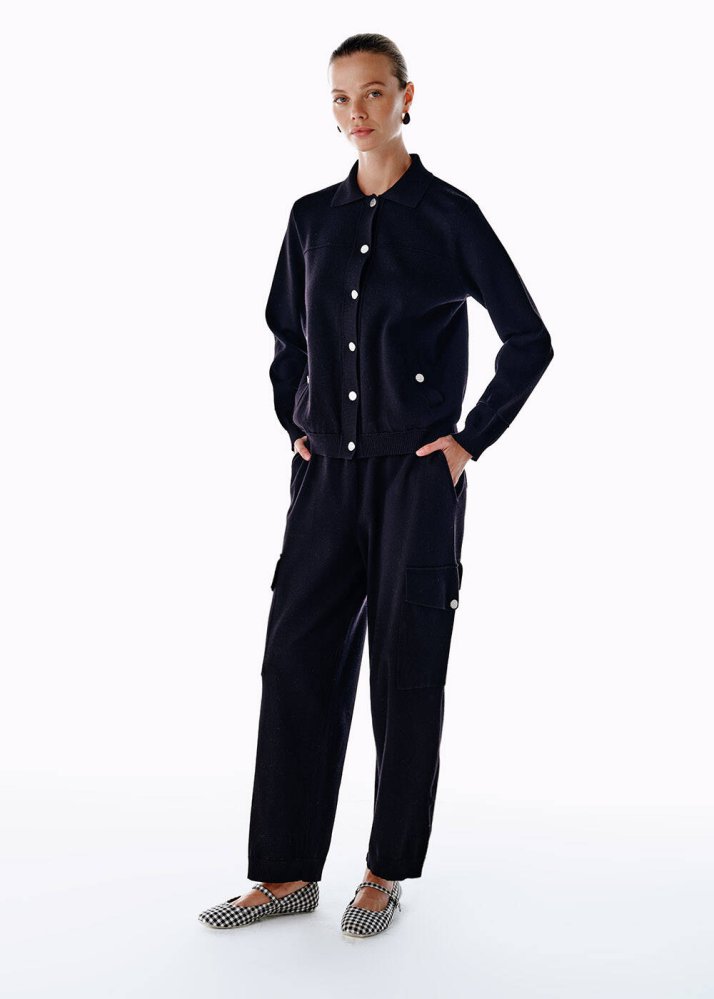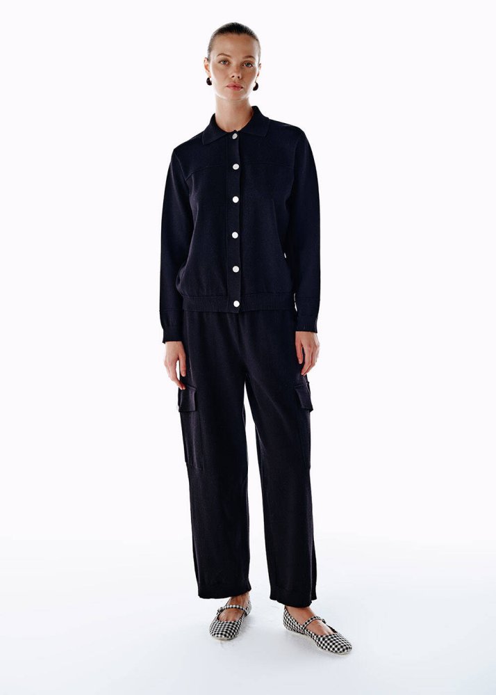 BLACK KNIT CARGO PANTS