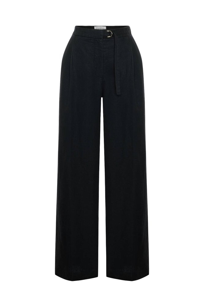 BLACK LINEN PLEATED PANTS