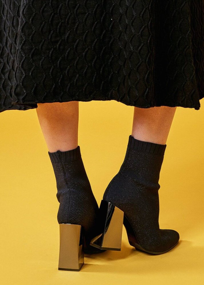 Black Lurex Knit Sock Booties
