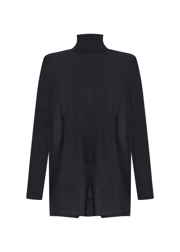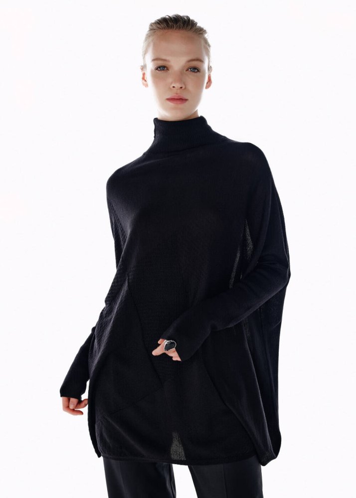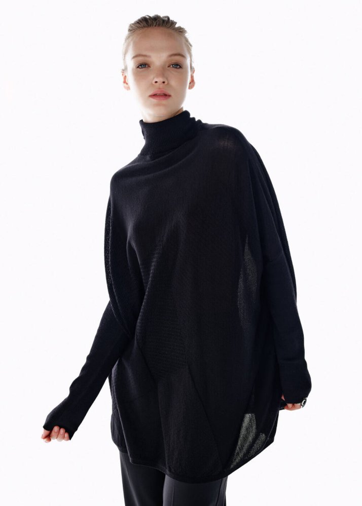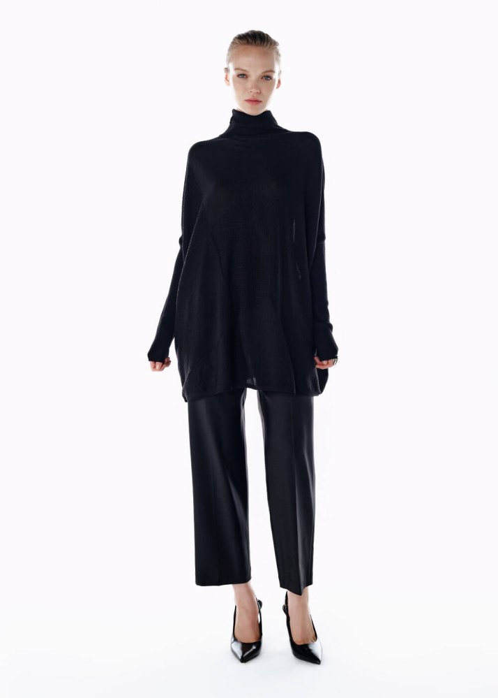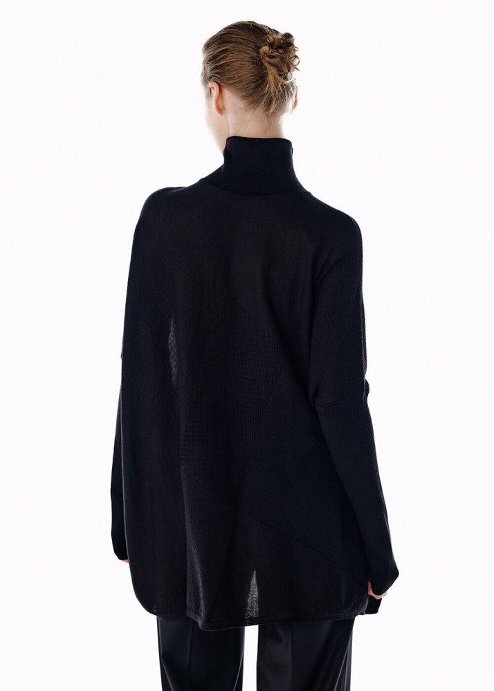 BLACK MERINO WOOL BLEND KNIT TUNIC