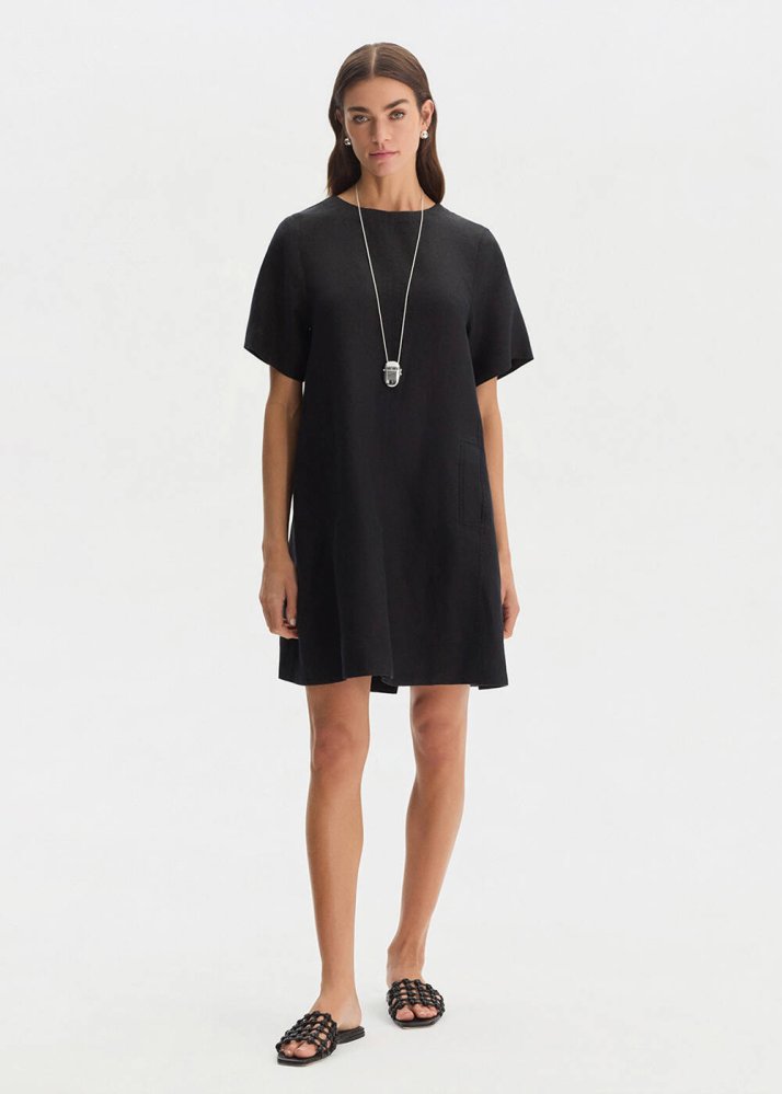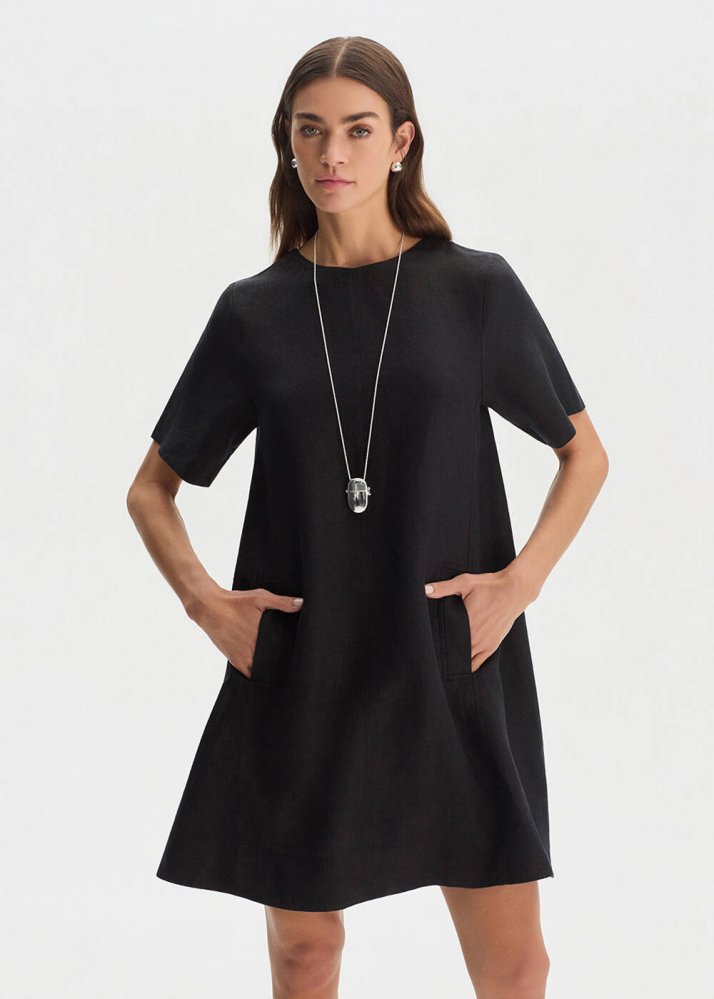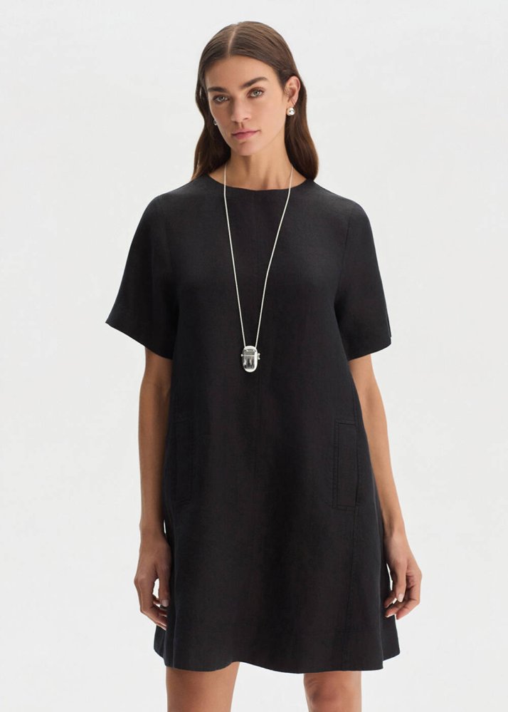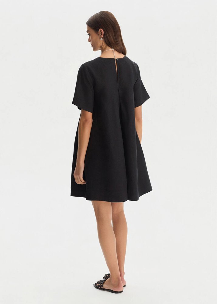 BLACK MINI LINEN DRESS