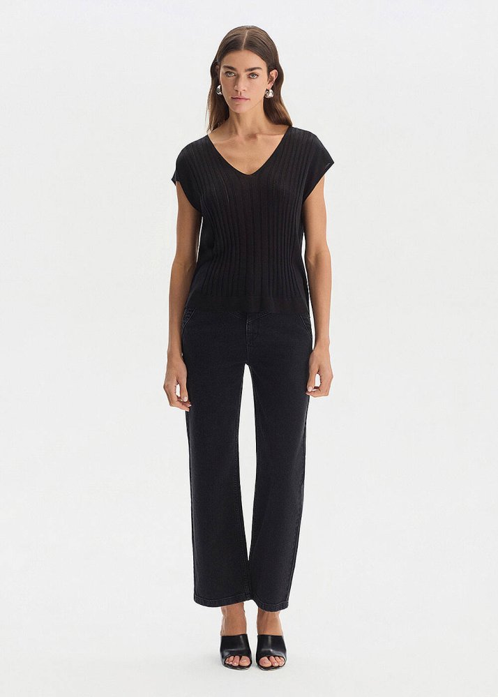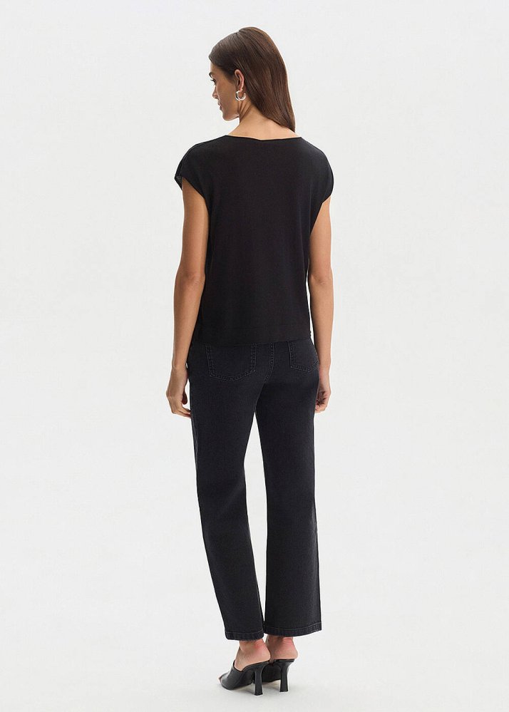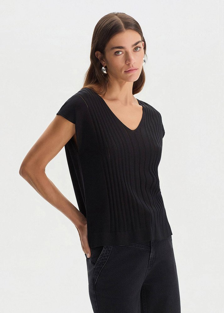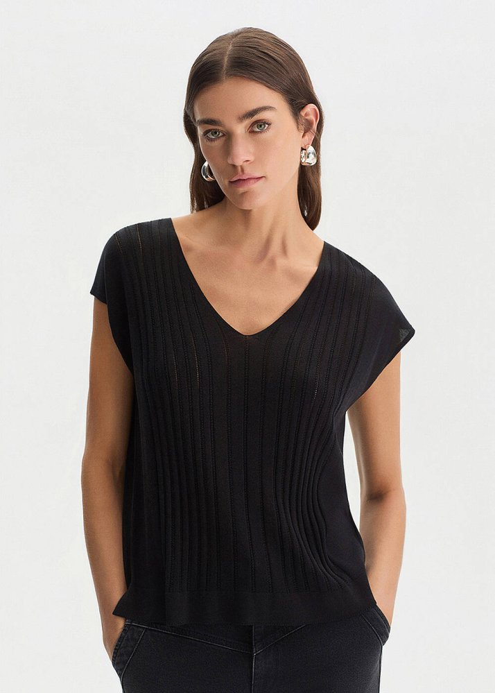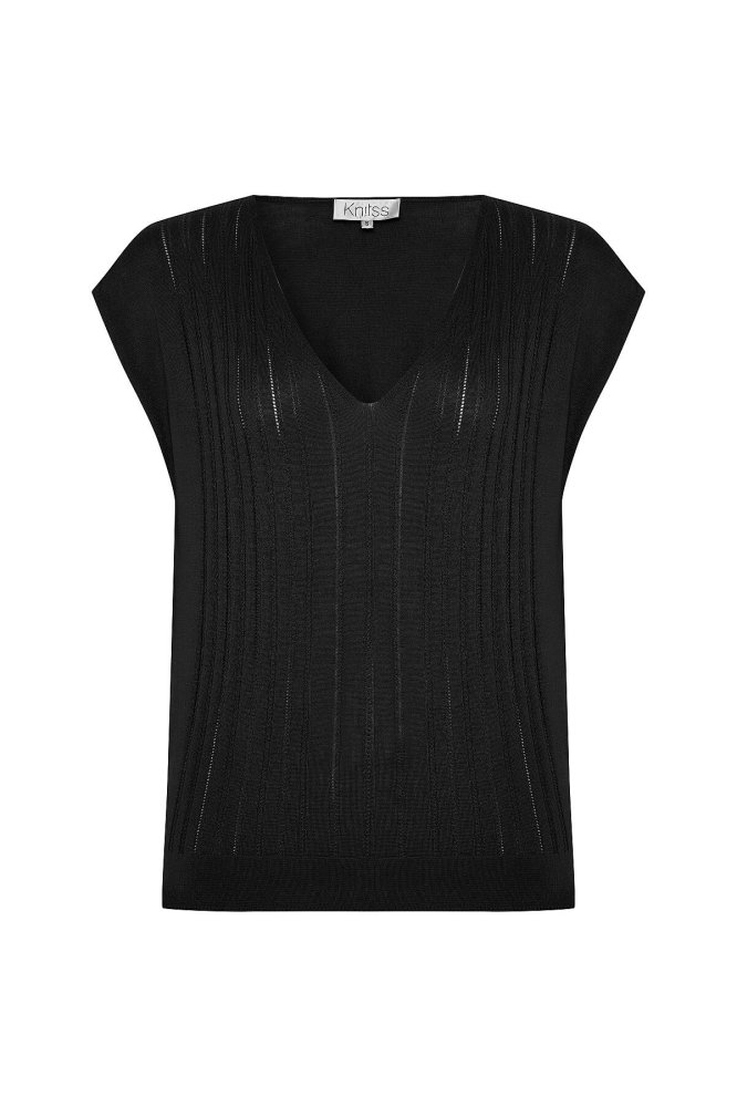 BLACK SILK BLEND KNIT TOP
