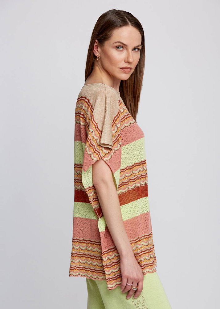Boat Neck Pointelle Detail Knit Tunic