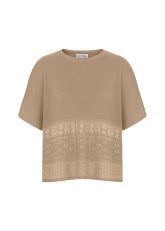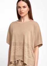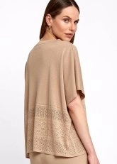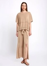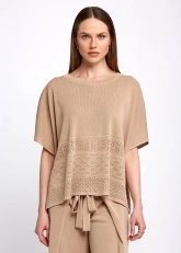 Bohem tarz bej triko üst ile yaz kombinlerinize Knitss şıklığını katın. Oversize kalıba sahip triko üst, modern ve çevreye duyarlı kadınlar için FSC sertifikalı elyaflardan üretilmiştir. Etek uçlarında ajur örgü detaylara sahip kadın triko üst modeli, takımı olan Olivia Pants ile mükemmel bir uyum içerisindedir. Knitss triko üst, hafta içi ve hafta sonu kombinleriniz için idealdir.