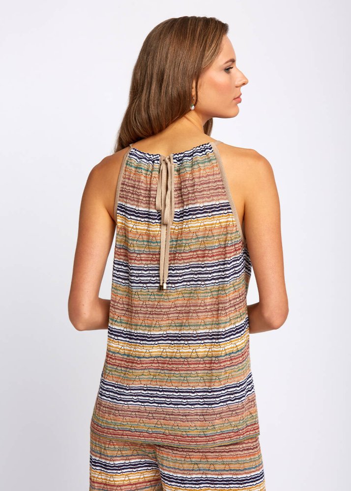 Boyundan Bağlamalı Çok Renkli Çizgili Triko Üst