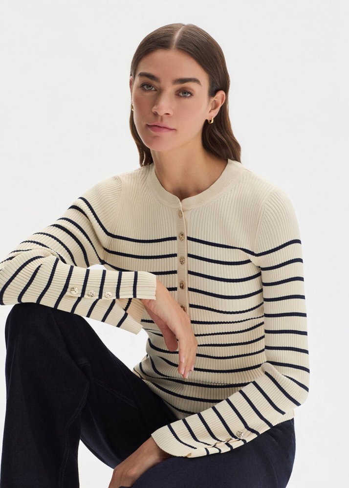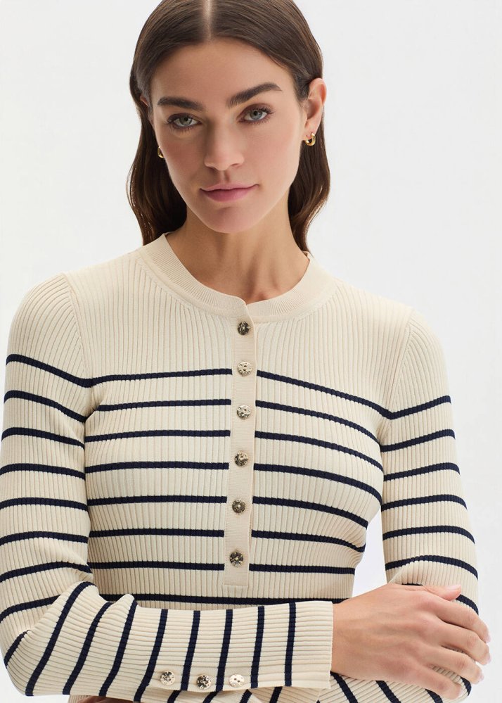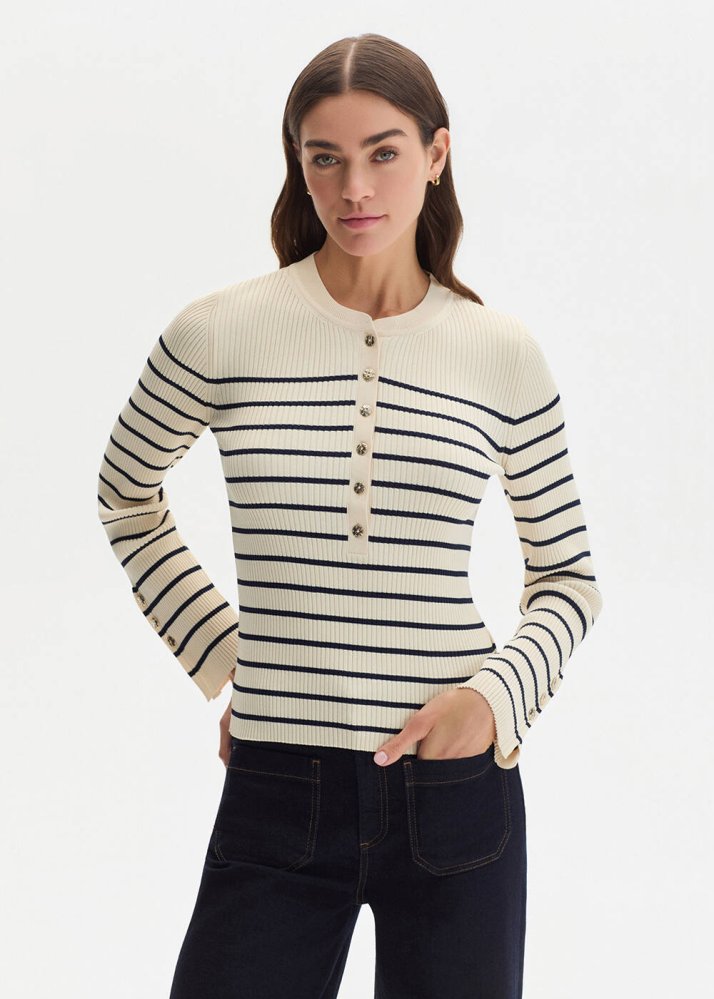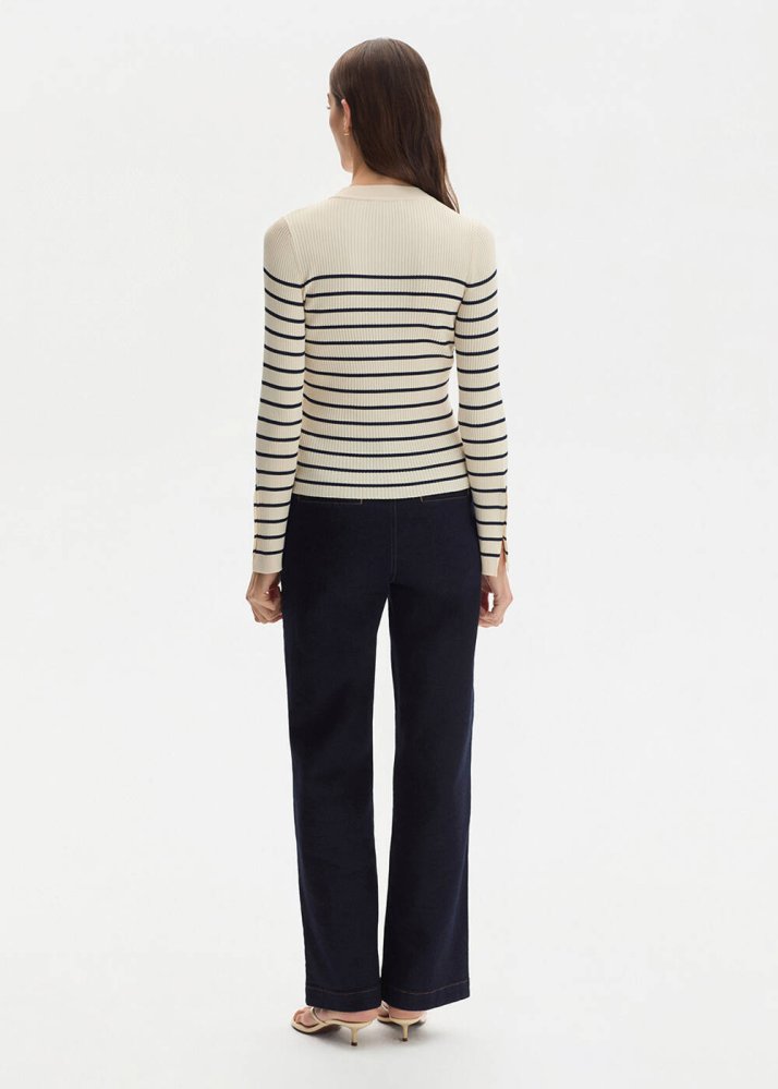 BUTTONED COLLAR SAND NAVY STRIPED KNIT