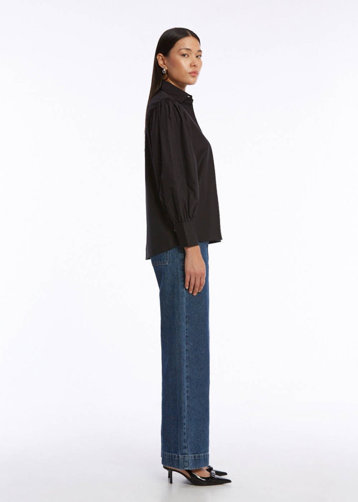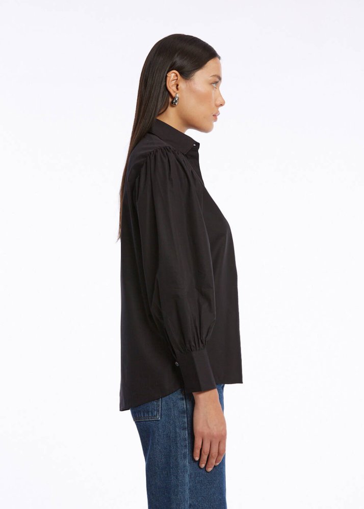 Büzgü Detaylı Saf Pamuk Siyah Gömlek