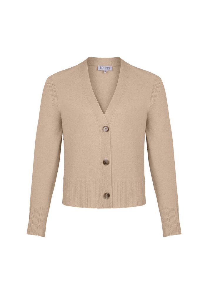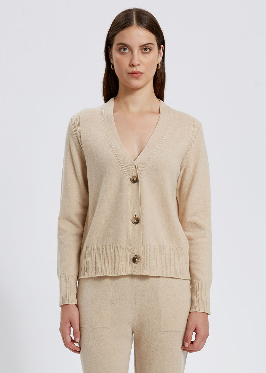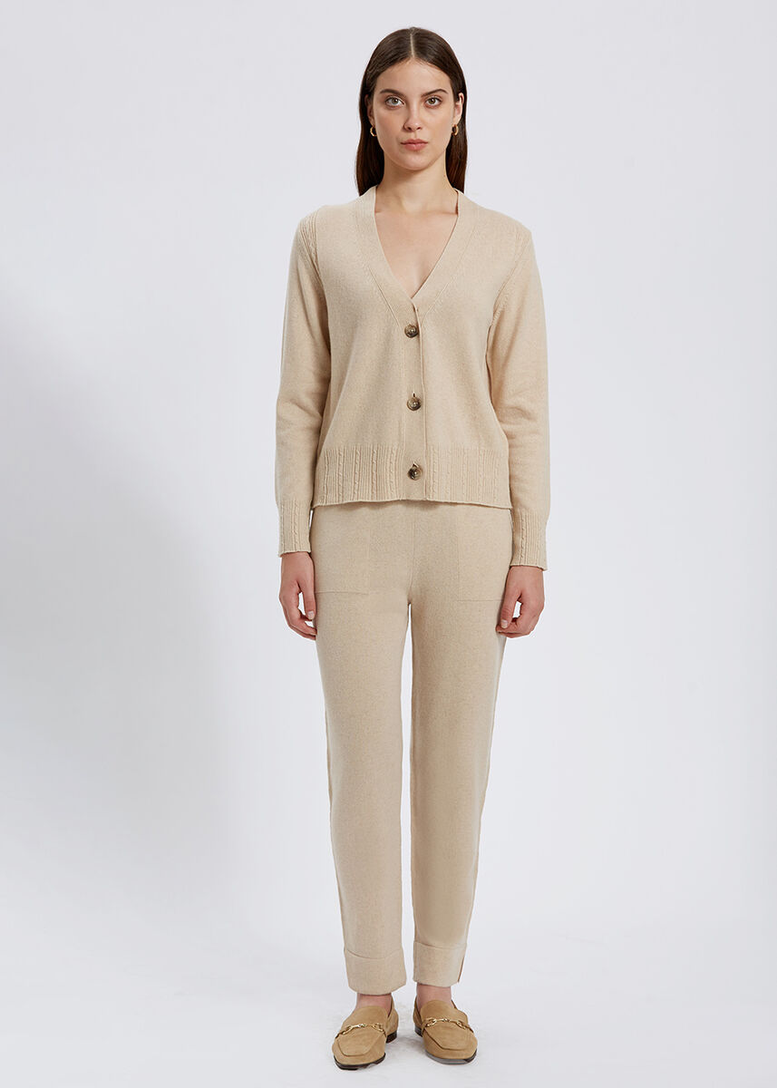 Cable Detailed Cream Cashmere Knit Cardigan
